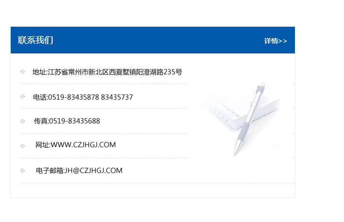 傳真:0519-83435688    郵編:213135    網址:WWW.czjhgj_com.apsups.com    電子郵箱:JH@czjhgj_com.apsups.com